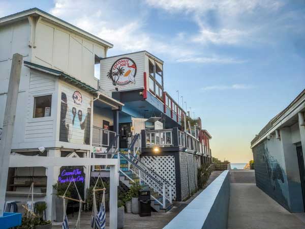 Coconut Joe's Beach Grill1120 Ocean Blvd | (843) 886-0046 | Brunch (Sat), Lunch & Dinner | Seasonal The quintessential IOP beachfront experience. Perched right on the oceanfront with a covered deck facing the Atlantic and a rooftop that hosts live music, this is the kind of place that makes a beach vacation feel complete. The menu is casual and crowd-pleasing: seafood baskets, sandwiches, tropical cocktails, and cold beers. |